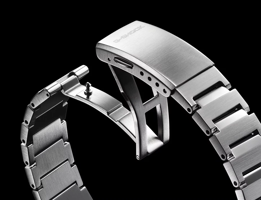 Den här herrklockan kombinerar tålighet, funktion och minimalistisk stil i ett genomtänkt paket. Designen bygger vidare på G‑SHOCKs arv av robust konstruktion men presenteras i ett skarpt, modernt uttryck som passar lika bra till vardag som till arbete och fritid. Den rena bezeln och de tre olika ytbehandlingarna – vertikal borstning, cirkulär borstning och spegelpolering – skapar en tydlig och stilren look som förändras med ljuset och ger klockan en dynamisk karaktär.