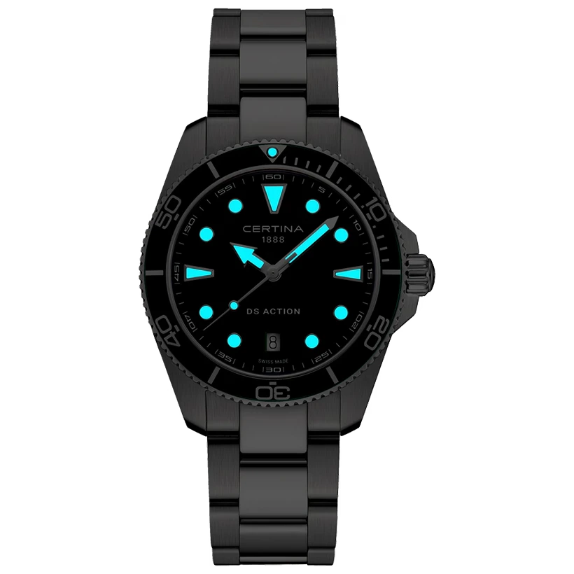Certina DS Action är byggd för vatten, men presterar lika bra på land. Det schweiziska quartzverket säkerställer hög precision och minimal skötsel, medan den gedigna konstruktionen uppfyller högt ställda krav på tålighet.